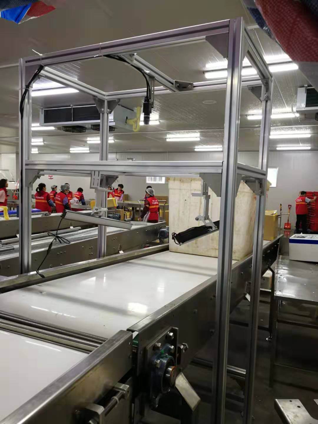 食品零售行業(yè)電子標(biāo)簽揀選系統(tǒng),斜輪機(jī)分揀,動(dòng)態(tài)秤用于獲取重量數(shù)據(jù),掃碼系統(tǒng)獲取包裹條碼信息,并上傳系統(tǒng),實(shí)現(xiàn)有效揀選產(chǎn)品,節(jié)省人力成本。