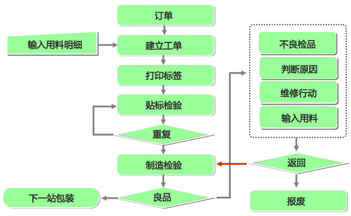 ·檢討不良減少重工:對(duì)不良原因進(jìn)行統(tǒng)計(jì),并且在生產(chǎn)動(dòng)態(tài)中適時(shí)提供不良品預(yù)警減少重工的機(jī)會(huì)。